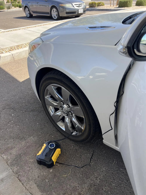 Funciona conectándolo al mechero (encendedor) de 12V de tu coche. Su diseño compacto y cable largo lo hacen perfecto para guardarlo en la guantera y usarlo en cualquier emergencia.