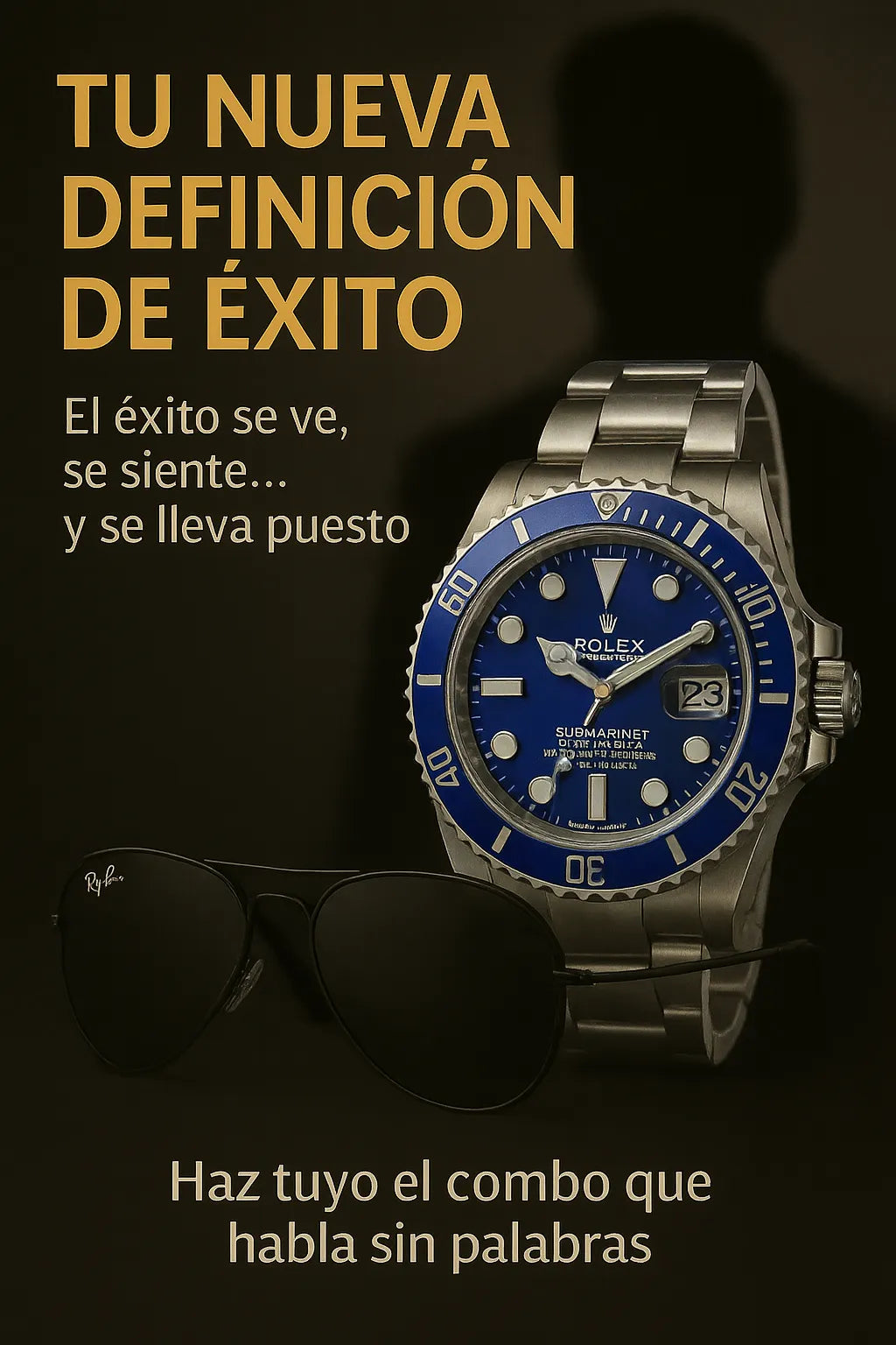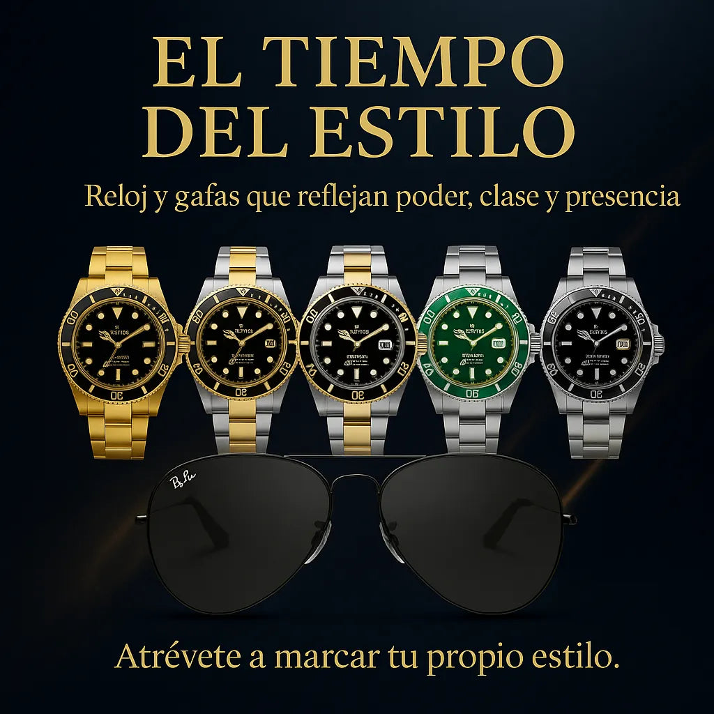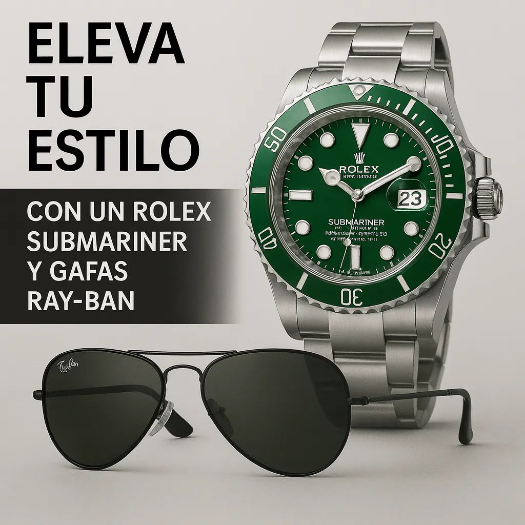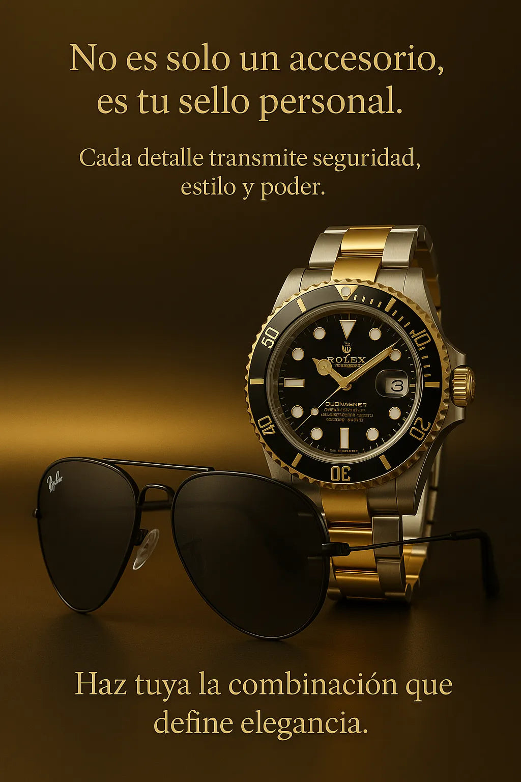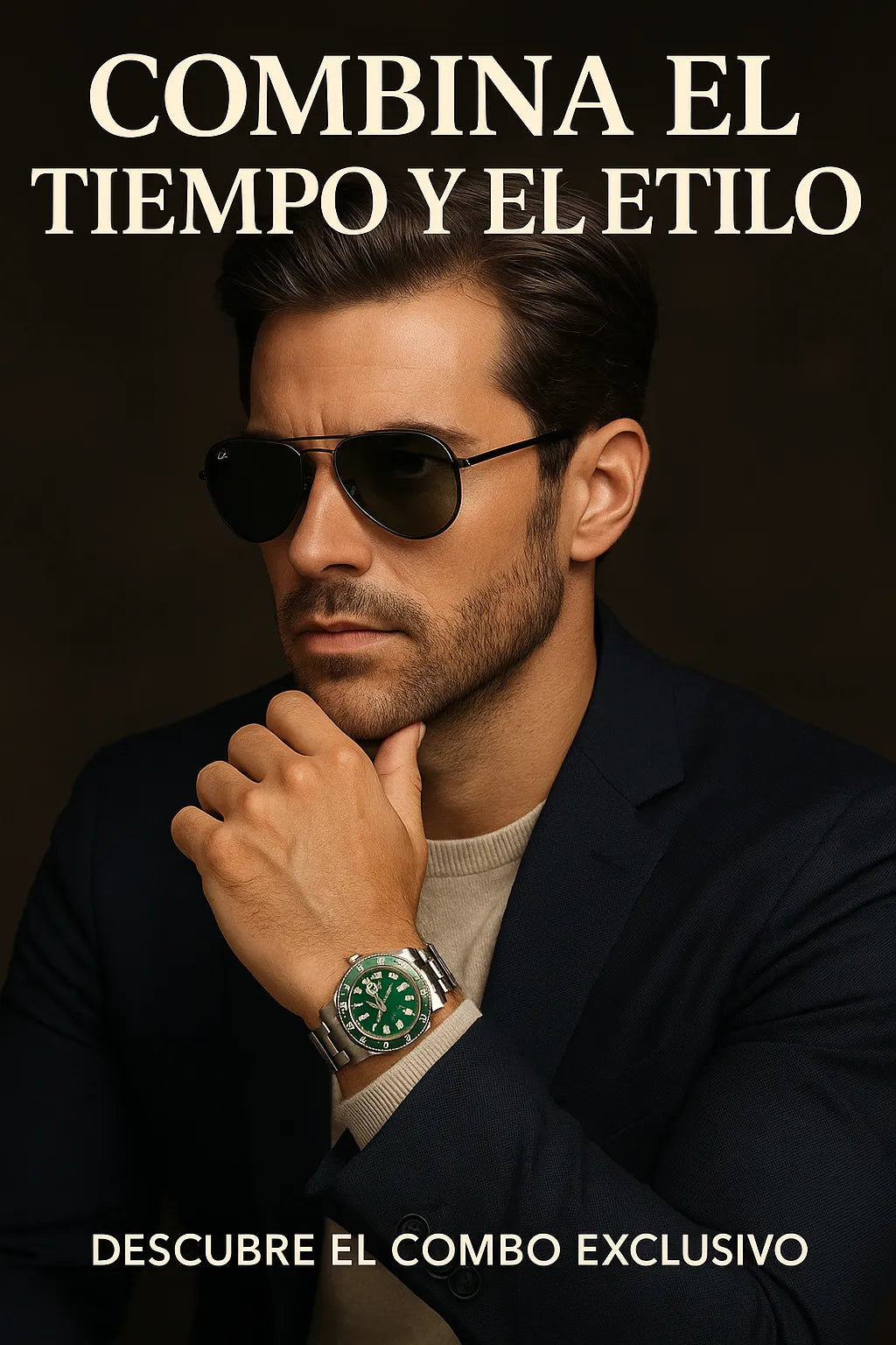 Eleva tu presencia. Un reloj que impone respeto y unas gafas que marcan estilo.